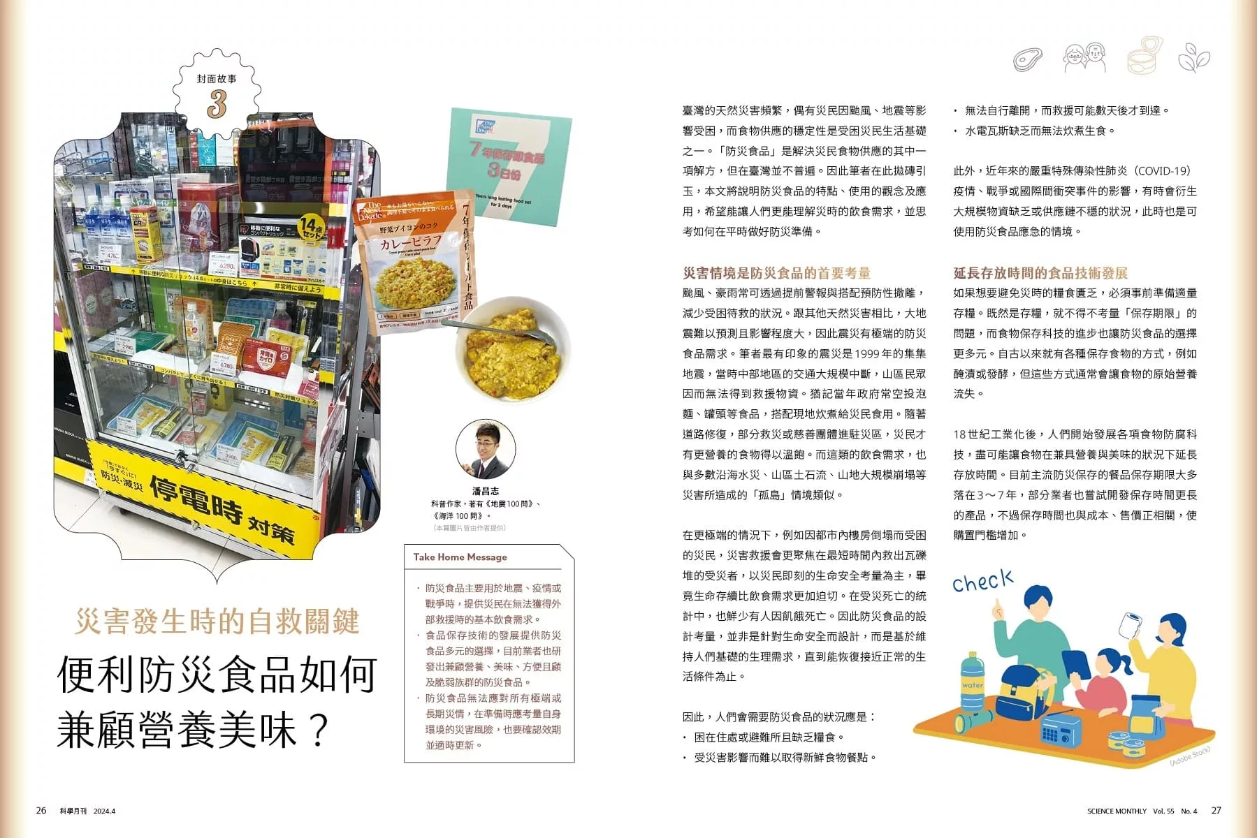 26 封面故事三:災害發生時的自救關鍵 便利防災食品如何兼顧營養美味?/潘昌志
