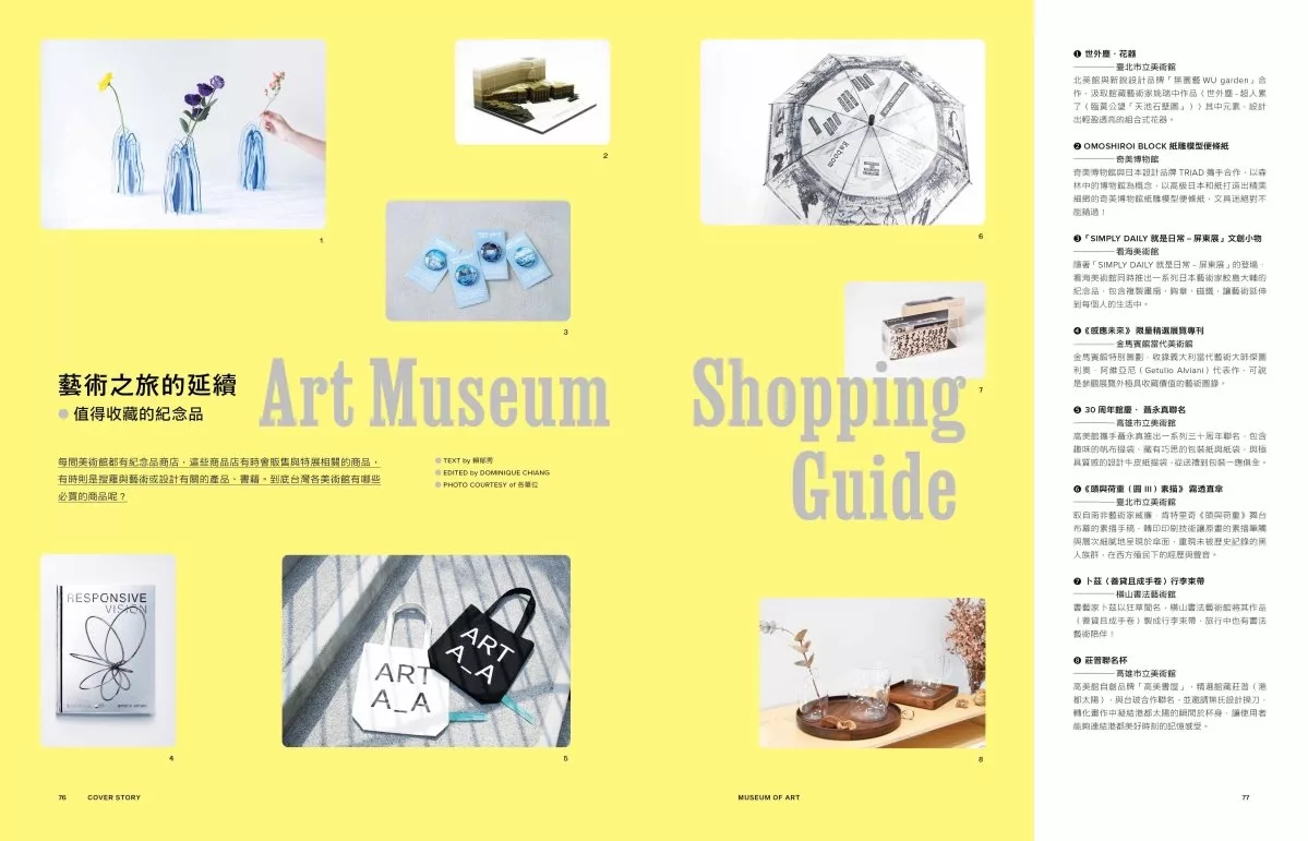 這個封面故事報導與記錄全台灣各式各樣的美術館,從大型知名的文化大平台,到獨具特色、意想不到的地方與私人美術館。我們也從不同角度切入:看展經驗豐富的藝術家與收藏家如姚謙和郭彥甫,曾任故宮院長的重量級館長林曼麗和新任臺中市立美術館館長賴依欣,參與多個美術館改造興建的建築師劉培森,以及剛改建完基隆美術館的梁豫漳、江賢二的重要藏家與小美術館創辦人張裕能等人的深度專訪,藝術家林舜龍、蘇匯宇、陳怡潔談他們與美術館的關係。此外,美術館背後的典藏與修復到底在幹什麼?紀念品店有什麼可以買?這些都是認識美術館的重要關鍵。