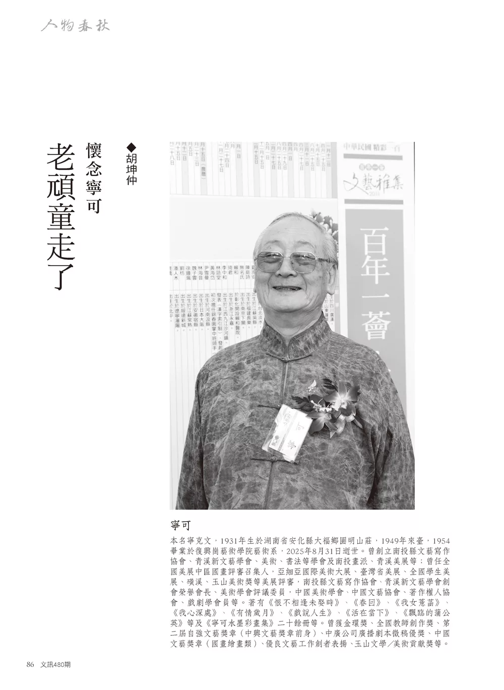 ◎「人物春秋」:我們可以看到終生投身文學的長者們的智慧風華、黃金盛年作家馳騁文壇的心路軌跡、年輕作家的初試啼聲,以及學者致力研究的學思歷程。