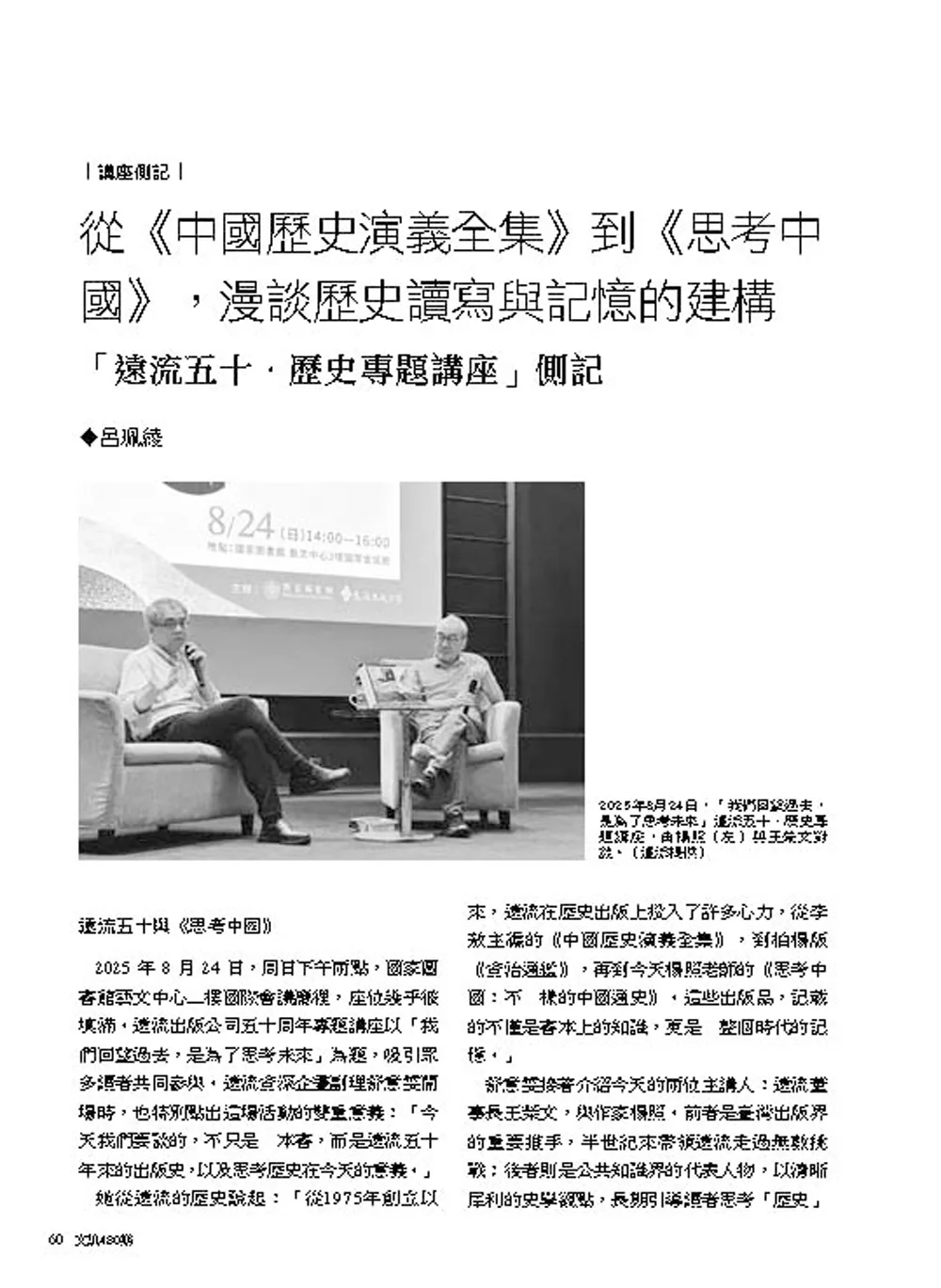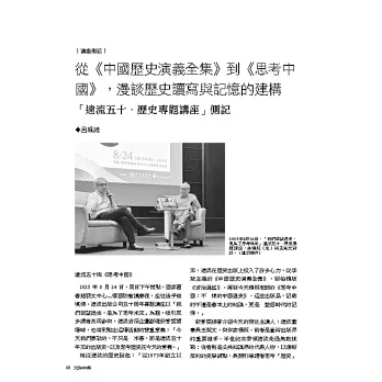 從《中國歷史演義全集》到《思考中國》,漫談歷史讀寫與記憶的建構——「遠流五十.歷史專題講座」側記 ◆呂珮綾