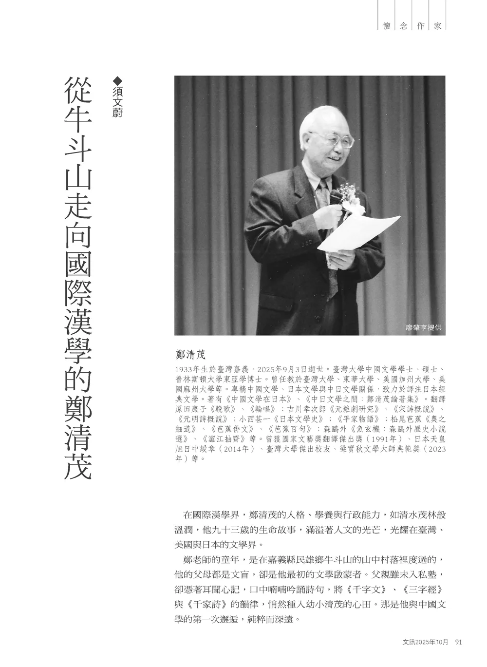 從牛斗山走向國際漢學的鄭清茂 ◆須文蔚