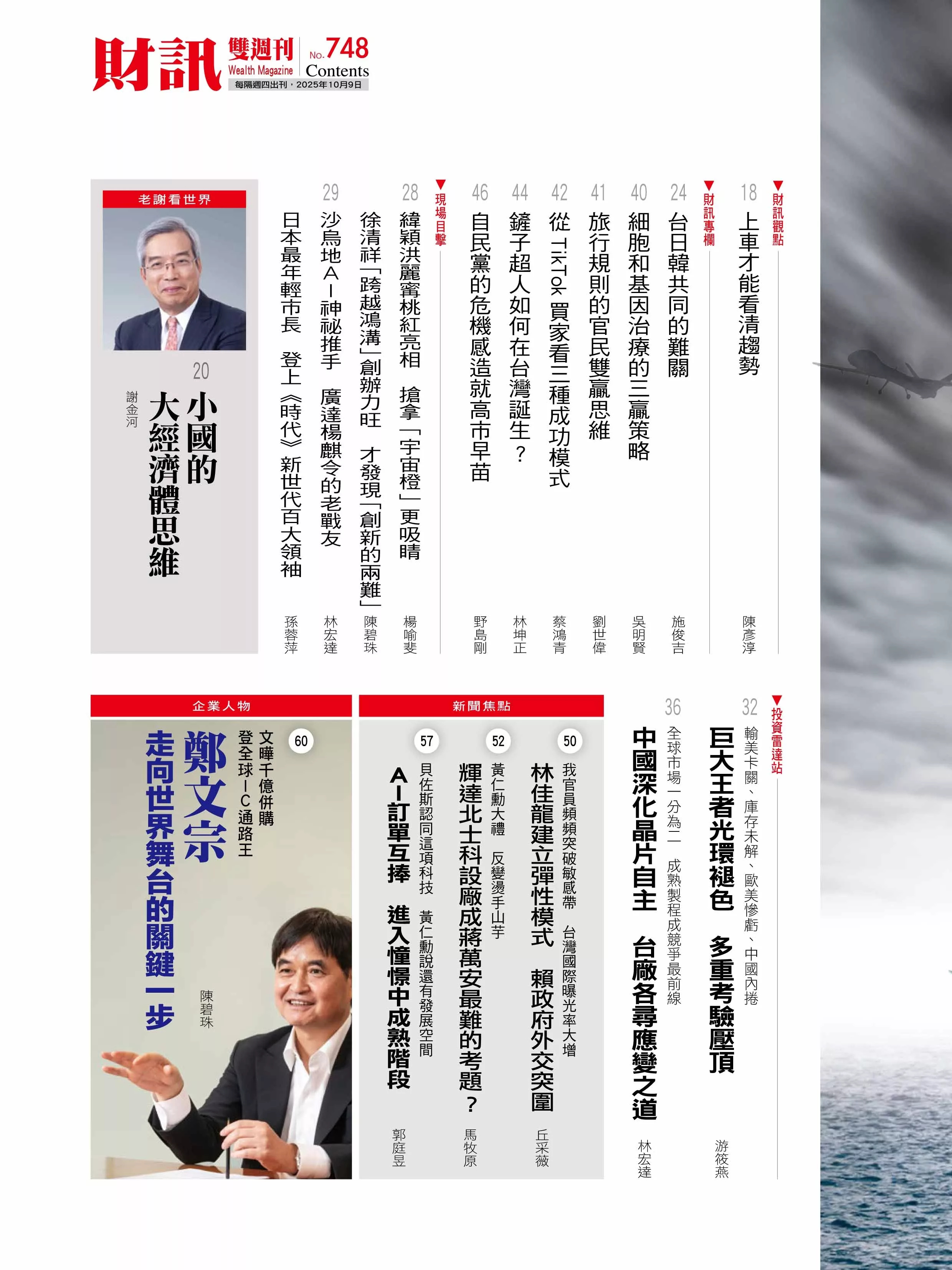 財訊是台灣第一本財經投資雜誌,報導企業內幕、專訪各界核心人物、掌握全球經濟脈動、分析台股港股中國股市,前瞻趨勢投資領航,財訊助你拓展財富版圖。