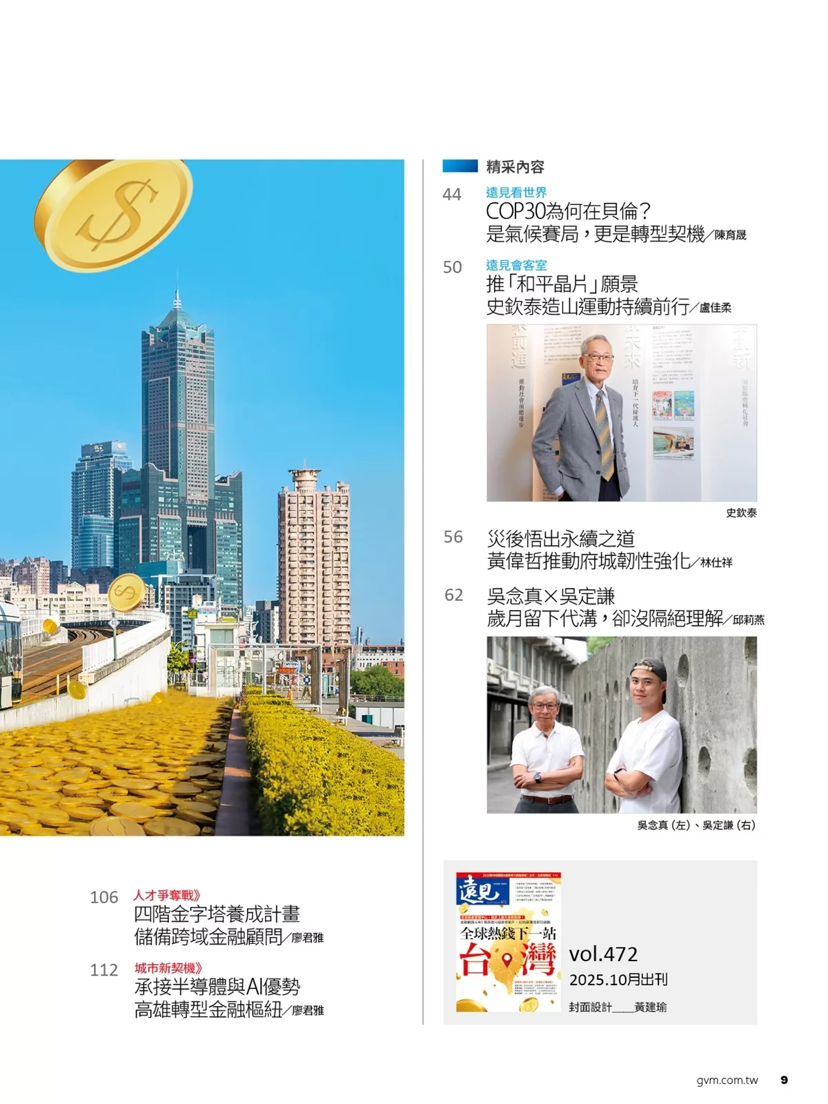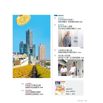 遠見天下文化出版股份有限公司一直以傳播進步觀念自許。旗下的「天下文化」創立於1982年春天,陸續推出「財經企管」、「心理勵志」、「社會人文」、「科學人文」、「文學人生」、「科學天地」、「健康生活」等系列。而「遠見雜誌」以「財經、管理、科技 第一流雜誌」自許,每期內容多元化,遙遙領先國內所有財經月刊,是知識管理的第一品牌。2001年另成立「遠見天下文化出版股份有限公司讀書俱樂部」,更是啟動「讀一流書、做一流人」新風潮,提昇台灣社會的生命力。遠見獨家側身專訪成功領導人新思維,深入淺出的文字陳述,貼近追求精進觀念的科技新貴心靈。遠見頂尖人物論壇,分析產業前景與經營理念,樹立產業優秀典範模式,指標性的策略模式執導產業發展,擘畫前瞻新思維。曾做過「探索日本、透視矽谷、瞭望上海、悠遊歐洲」等專題,還有,「有朋自遠方來」的第一手特別報導,寰宇國際即時新知。全球管理大師經典智語,整合新世紀觀點領先議題,洞察機先瞭望全球經營智慧,透過智慧者的銳眼,探索世界新觀念。
