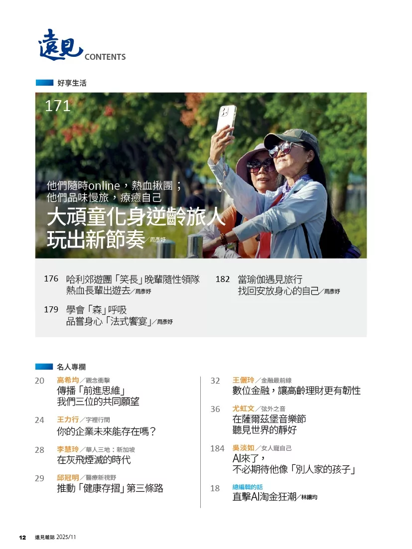 遠見天下文化出版股份有限公司一直以傳播進步觀念自許。旗下的「天下文化」創立於1982年春天,陸續推出「財經企管」、「心理勵志」、「社會人文」、「科學人文」、「文學人生」、「科學天地」、「健康生活」等系列。而「遠見雜誌」以「財經、管理、科技 第一流雜誌」自許,每期內容多元化,遙遙領先國內所有財經月刊,是知識管理的第一品牌。2001年另成立「遠見天下文化出版股份有限公司讀書俱樂部」,更是啟動「讀一流書、做一流人」新風潮,提昇台灣社會的生命力。遠見獨家側身專訪成功領導人新思維,深入淺出的文字陳述,貼近追求精進觀念的科技新貴心靈。遠見頂尖人物論壇,分析產業前景與經營理念,樹立產業優秀典範模式,指標性的策略模式執導產業發展,擘畫前瞻新思維。曾做過「探索日本、透視矽谷、瞭望上海、悠遊歐洲」等專題,還有,「有朋自遠方來」的第一手特別報導,寰宇國際即時新知。全球管理大師經典智語,整合新世紀觀點領先議題,洞察機先瞭望全球經營智慧,透過智慧者的銳眼,探索世界新觀念。