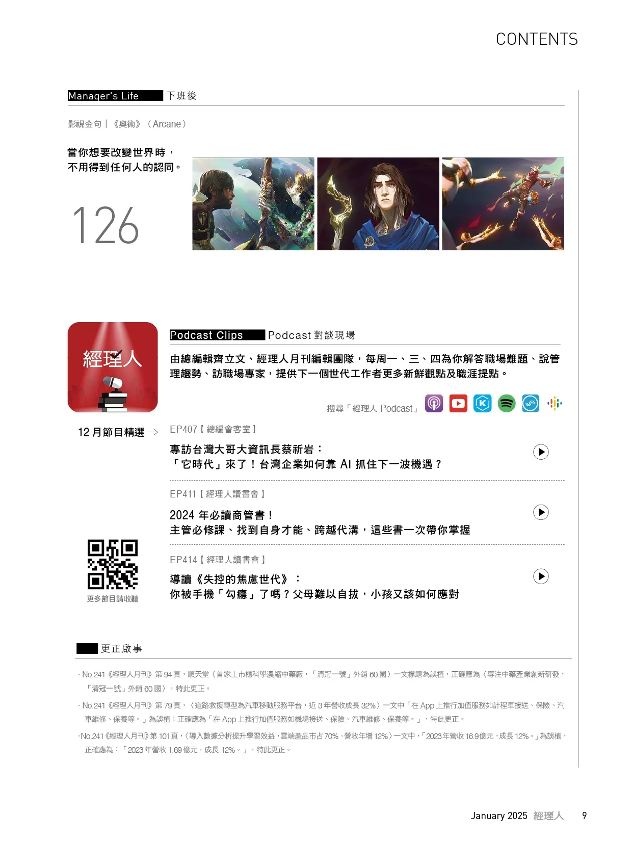 ・No.241《經理人月刊》第101頁,〈導入數據分析提升學習效益,雲端產品市占70%、營收年增12%〉一文中,「2023年營收16.9億元,成長12%。」為誤植,正確應為:「2023年營收1.69億元,成長12%。」,特此更正。
