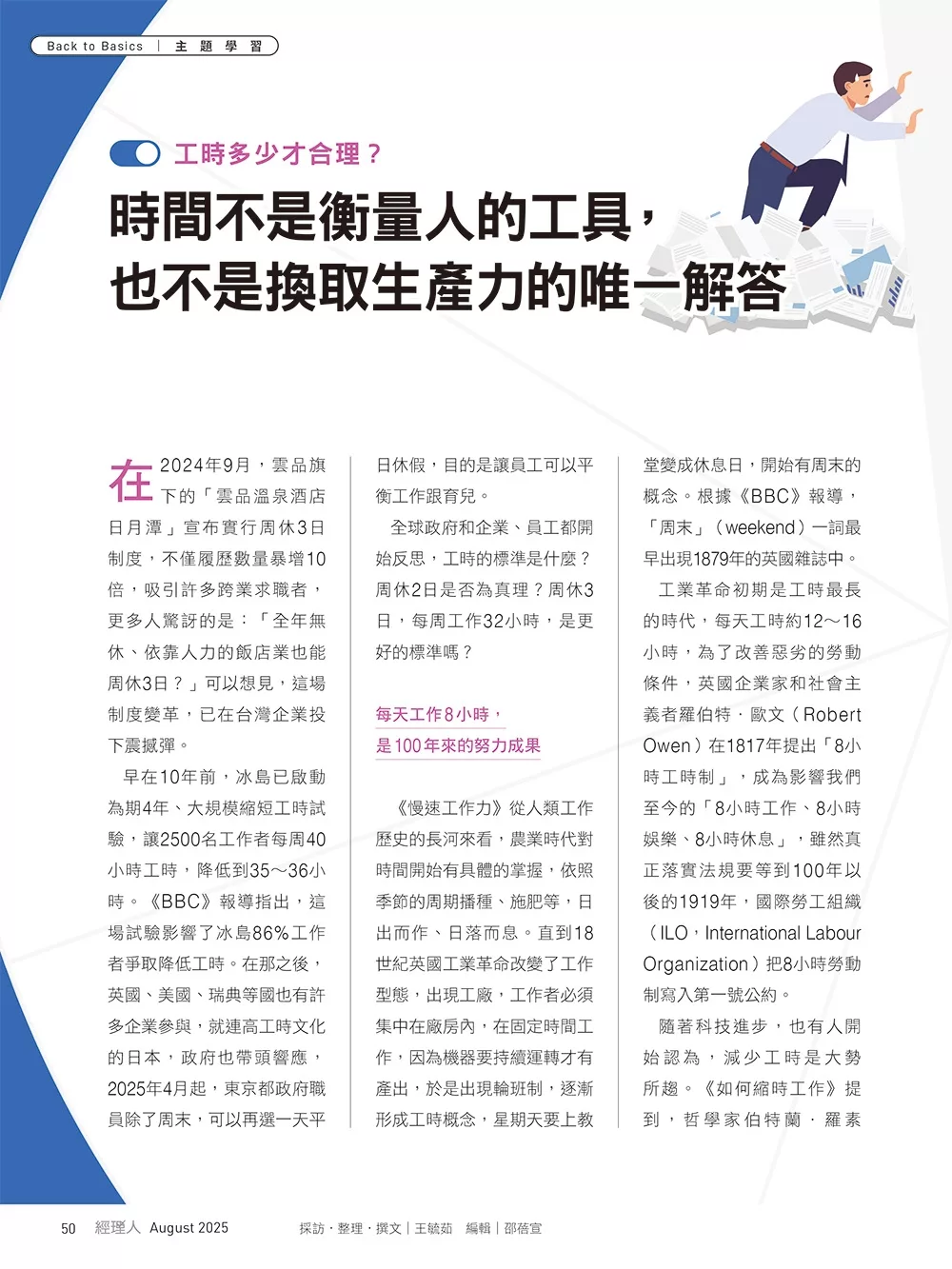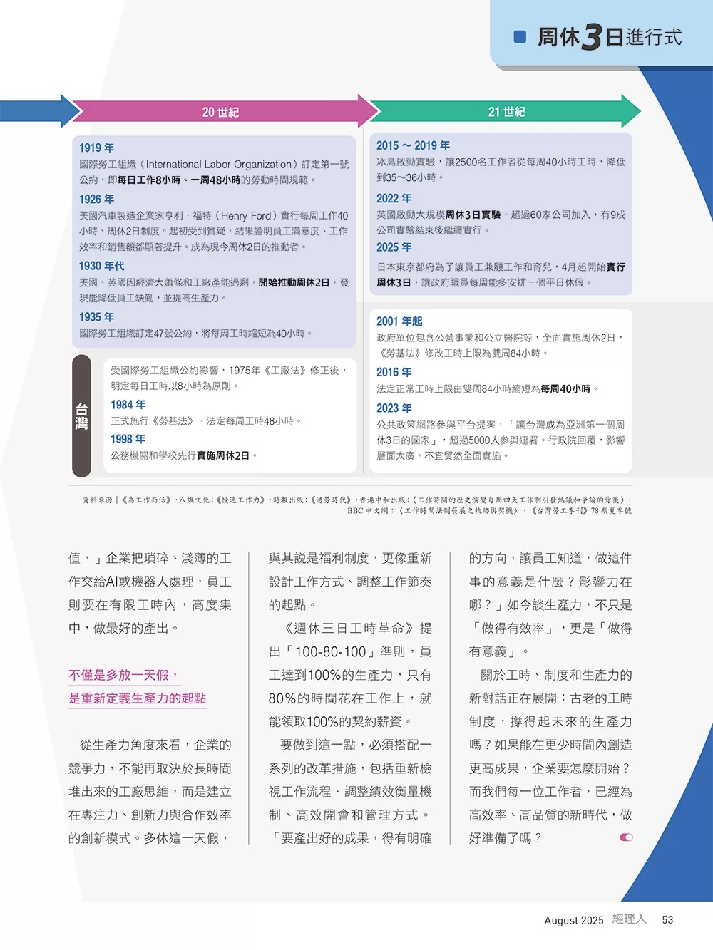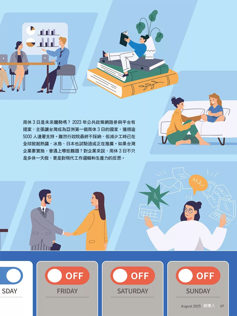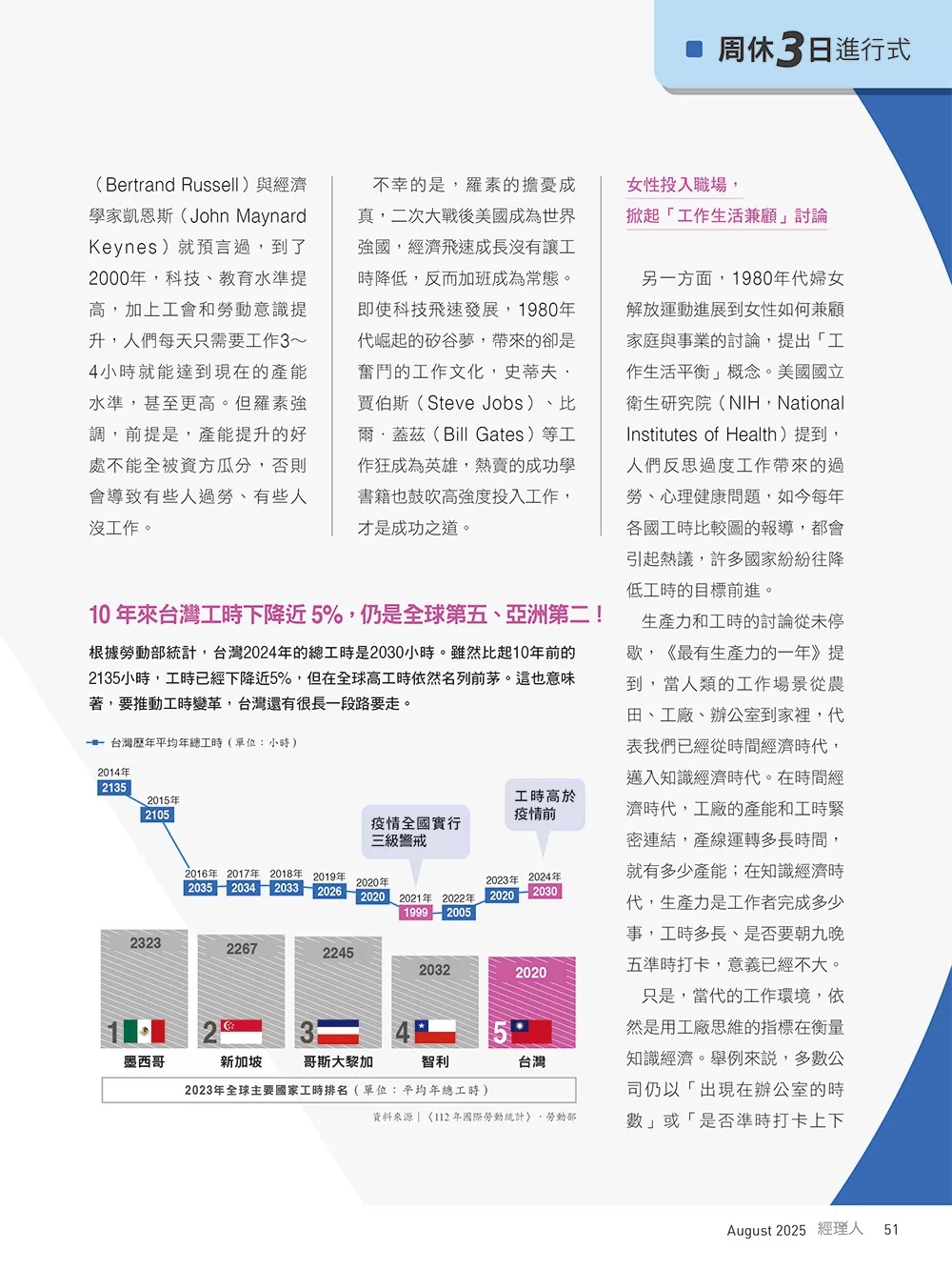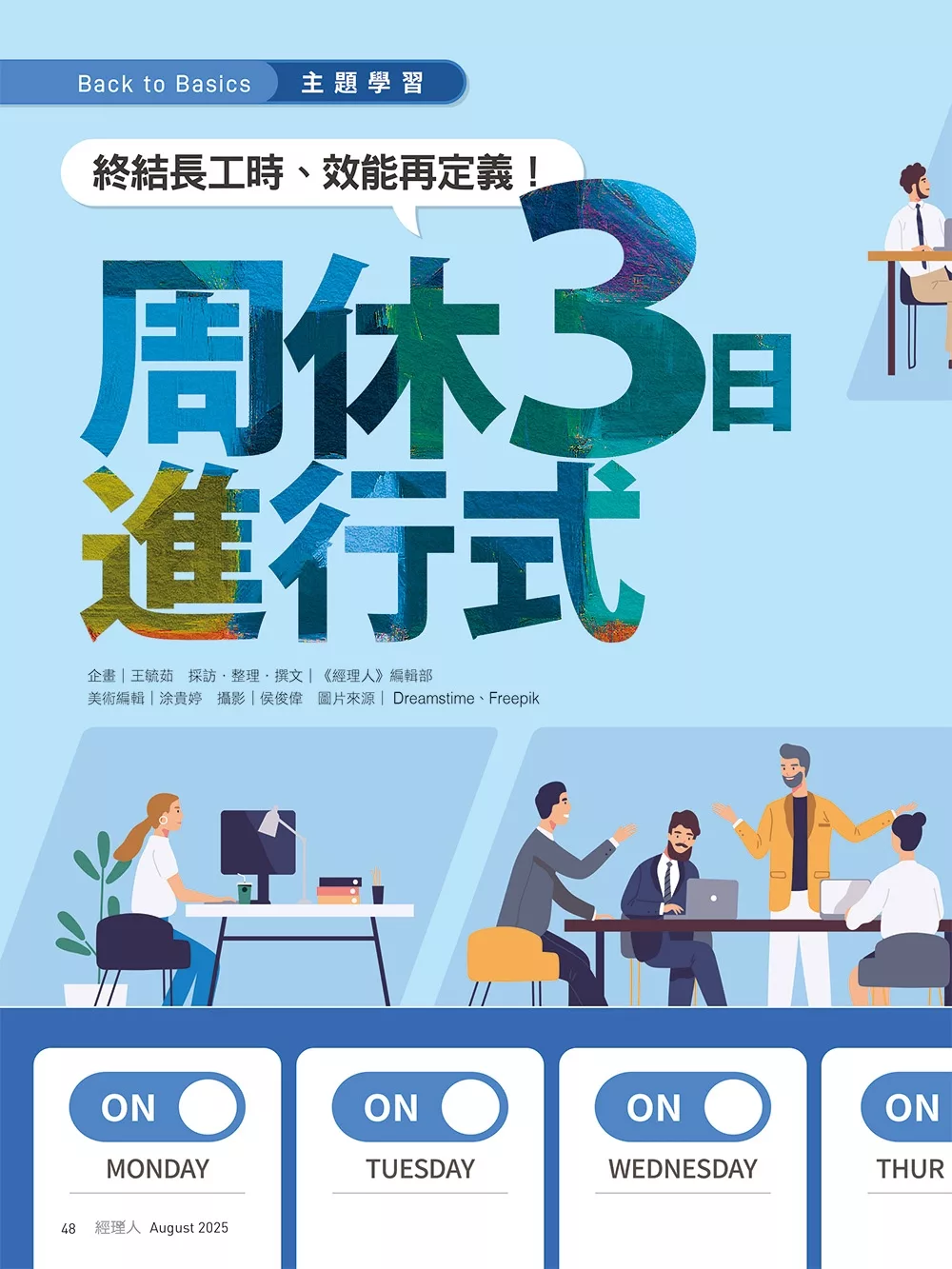 • 封面標題:周休3日進行式 終結長工時、效能再定義!