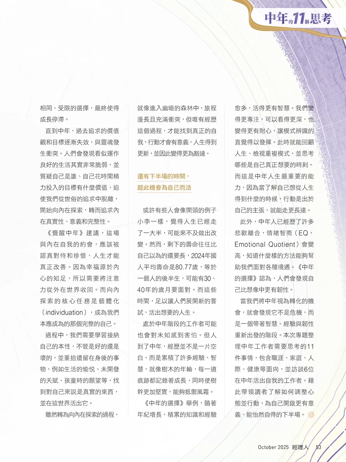 • 封面標題:中年的11個思考