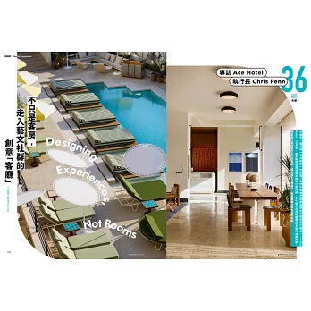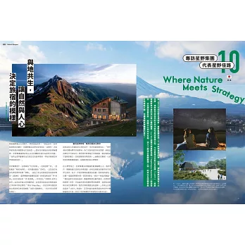 鋪展節奏上,50間旅宿被切片為以下面向,方便大家依據口味服用:坐擁絕景地貌的★自然,能量繽紛湧動的★都會,營造特定氛圍和世界觀的★主題體驗,在保存歷史中尋求創新重構的★老宅改造,以及展望未來的★創新方式——無論奢華或質樸,繁華或隱世,只要設計有心和講究,就已經有了第一個推開房門的理由。
