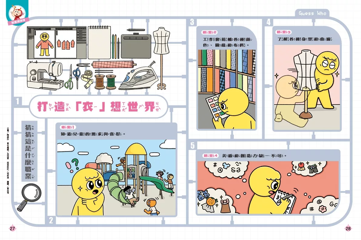 P.27職業猜猜猜----打造「衣」想世界---「我測量一下尺寸。」、「下一季流行什麼元素?」、「來試試看不同材質!」這些是什麼職業常說的話呢?