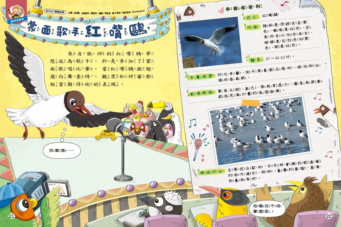 P.21動物大驚奇-----蒙面歌手紅嘴鷗----來自歐洲的紅嘴鷗夢想成為歌手,於是參加了蒙面歌唱比賽,他能順利成為歌手嗎?