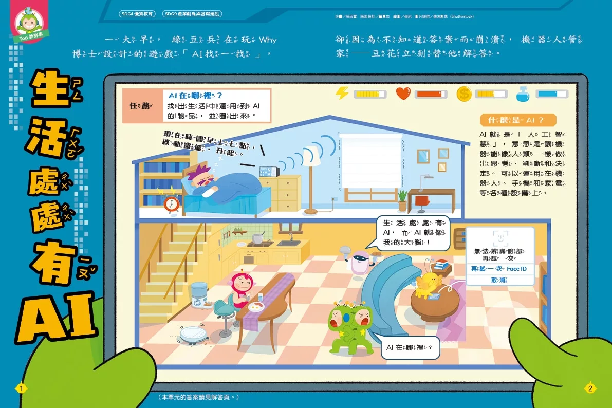 你有使用過AI嗎?其實,AI 早已悄悄走進我們的生活。在「Top新鮮事」,我們要帶領小讀者認識這位生活中的新夥伴──AI。生活中常見的掃地機器人、手機螢幕解鎖功能、語音助理等,這些方便的工具或功能,都和AI有關。AI可以幫我們做什麼?它說的話一定都對嗎?又該如何正確使用它呢?。科技可以讓生活更方便,但只有懂得好好使用AI,才能讓它成為真正的好幫手。希望小讀者在使用科技時,也能記得多問、多想、多確認,讓它陪著你一起學習新知、探索世界。