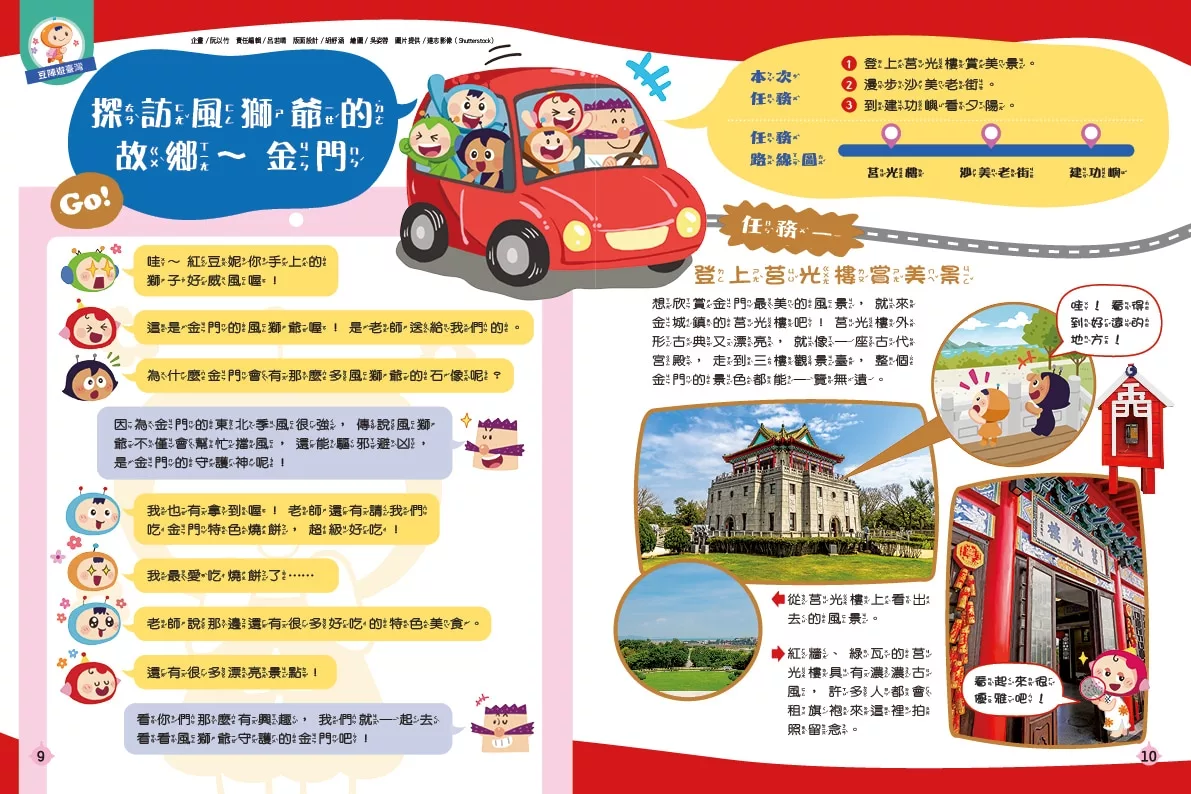 P.9豆陣遊臺灣---探訪風獅爺的故鄉~綠豆兵看到紅豆妮手上的風獅爺覺得好威風,原來風獅爺是金門的守護神呀!