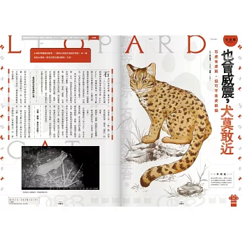 台灣史研究者吳亮衡陪同讀者重新考察近代史上所謂「三猛」獅虎貓(簡大獅、柯鐵虎、林少貓),作家顏訥與瀟湘神分別從文學與民話的角度偷摸各種在場與不在場的大貓咪;生態研究者李璟泓溫和堅定地說明台灣原生種石虎的困難處境(請搭配本期精彩的漫畫專欄一起看)。繪作家角斯蒐集了台灣獨特的虎貓系精怪傳說,還特別繪製出威風華麗的妖貓夜行圖,「廚房廢寶」索艾克教你做一桌「可以吃的貓」,至於攝影師趙豫中則隆重帶來「世界(沒打算登錄的)貓科文化遺產申請書」⋯⋯有沒有覺得畫風逐漸荒唐,好像有點跑掉?像是看見原野上盛年的獅王日正當中地奔馳,最後在涼快的樹蔭下煞車一倒,仰天露肚皮。