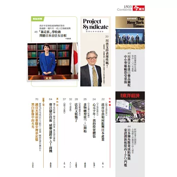 在與國際接軌上,《今周刊》與全球發行量第一的財經雜誌 - 美國彭博商周〈Bloomberg Businessweek〉,以及日本東洋經濟週刊〈Weekly Toyo Keizai〉合作,獨家授權翻譯轉載,藉此提供《今周刊》讀者更多、更全面的國際議題,以及更前瞻的財經趨勢與產業動態。