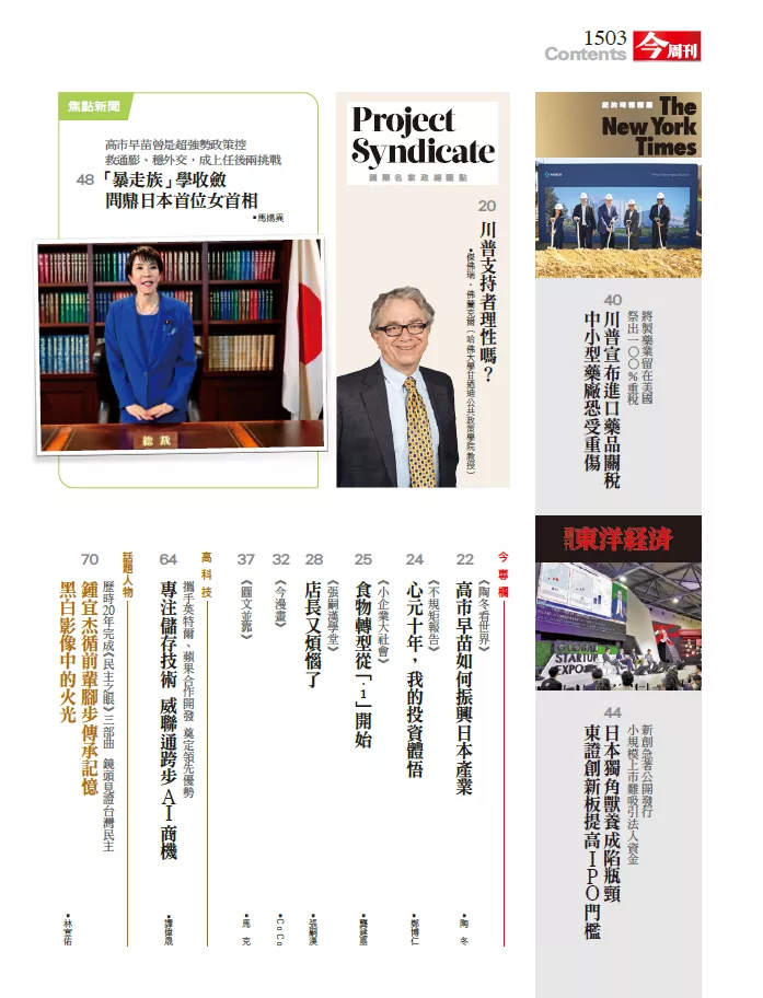 十餘年來,《今周刊》持續報導第一手的財經資訊與產業動態。從國際趨勢、政治經濟情勢、產業動態到個人投資、理財規劃及社會文化資訊,《今周刊》都由最專業的新聞團隊為讀者揭露最新的變化與發展。