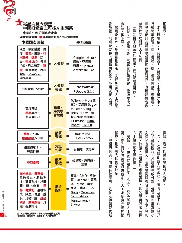 值得注意的是,中國領導人習近平對川普第二任態度,極為強硬。即使美國政策髮夾彎,中國自建AI硬體到軟體的完整系統的決心不變。(見82頁)