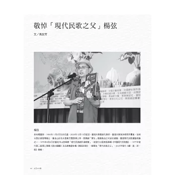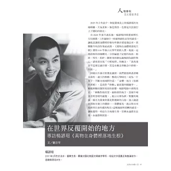 ◎「人物春秋」:我們可以看到終生投身文學的長者們的智慧風華、黃金盛年作家馳騁文壇的心路軌跡、年輕作家的初試啼聲,以及學者致力研究的學思歷程。