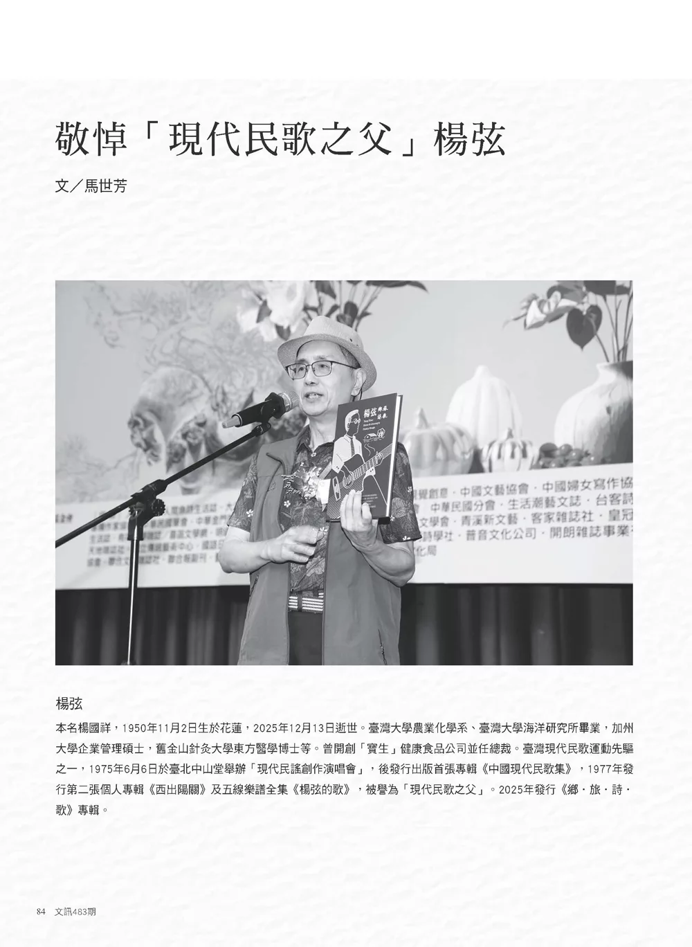 敬悼「現代民歌之父」楊弦 ◆馬世芳
