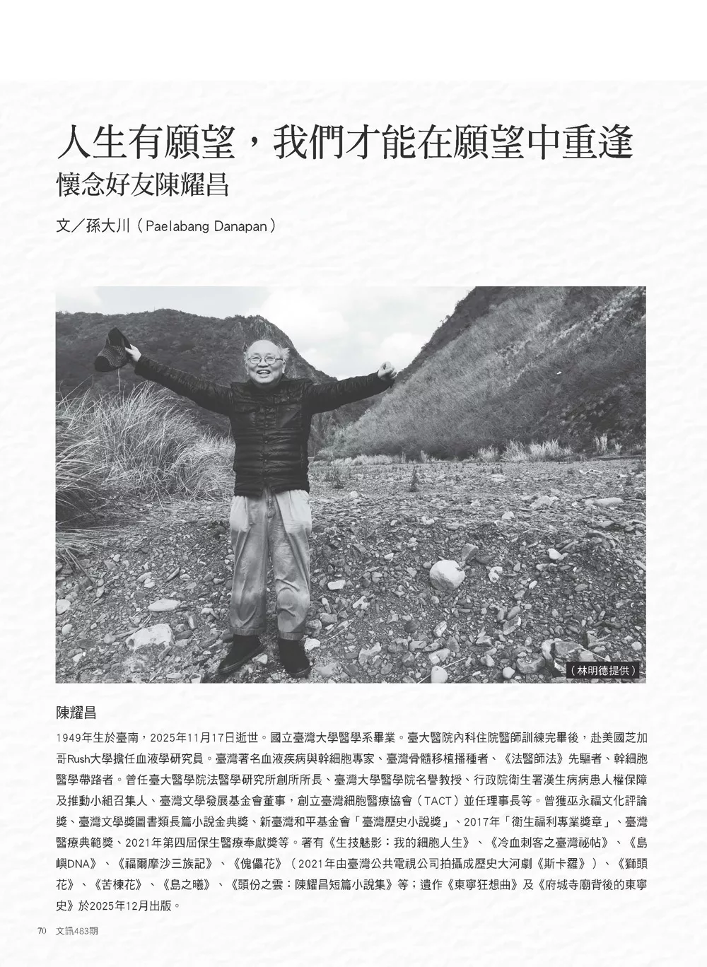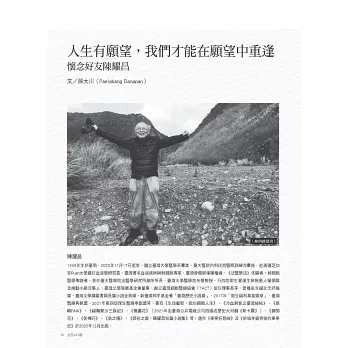 人生有願望,我們才能在願望中重逢──懷念好友陳耀昌 ◆孫大川