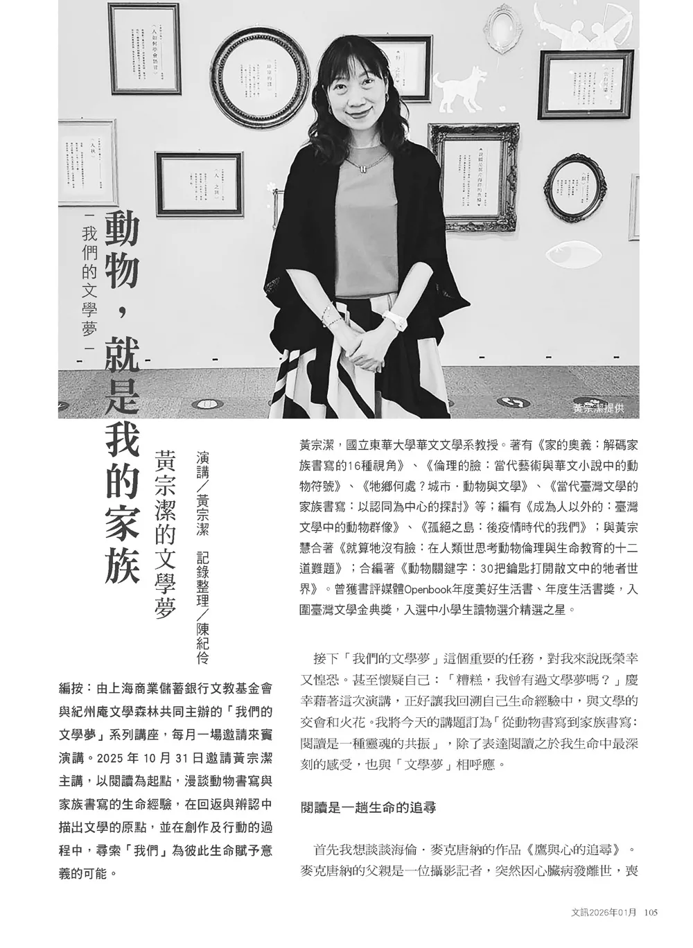 動物,就是我的家族──黃宗潔的文學夢 ◆黃宗潔