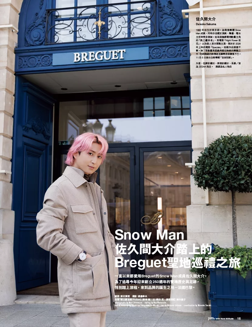 本期更以日本人氣偶像 佐久間大介(Snow Man成員)為封面人物,以其招牌粉紅元素呈現巴黎經典錶聖地巡禮。透過腕錶,觀看一位當代偶像
