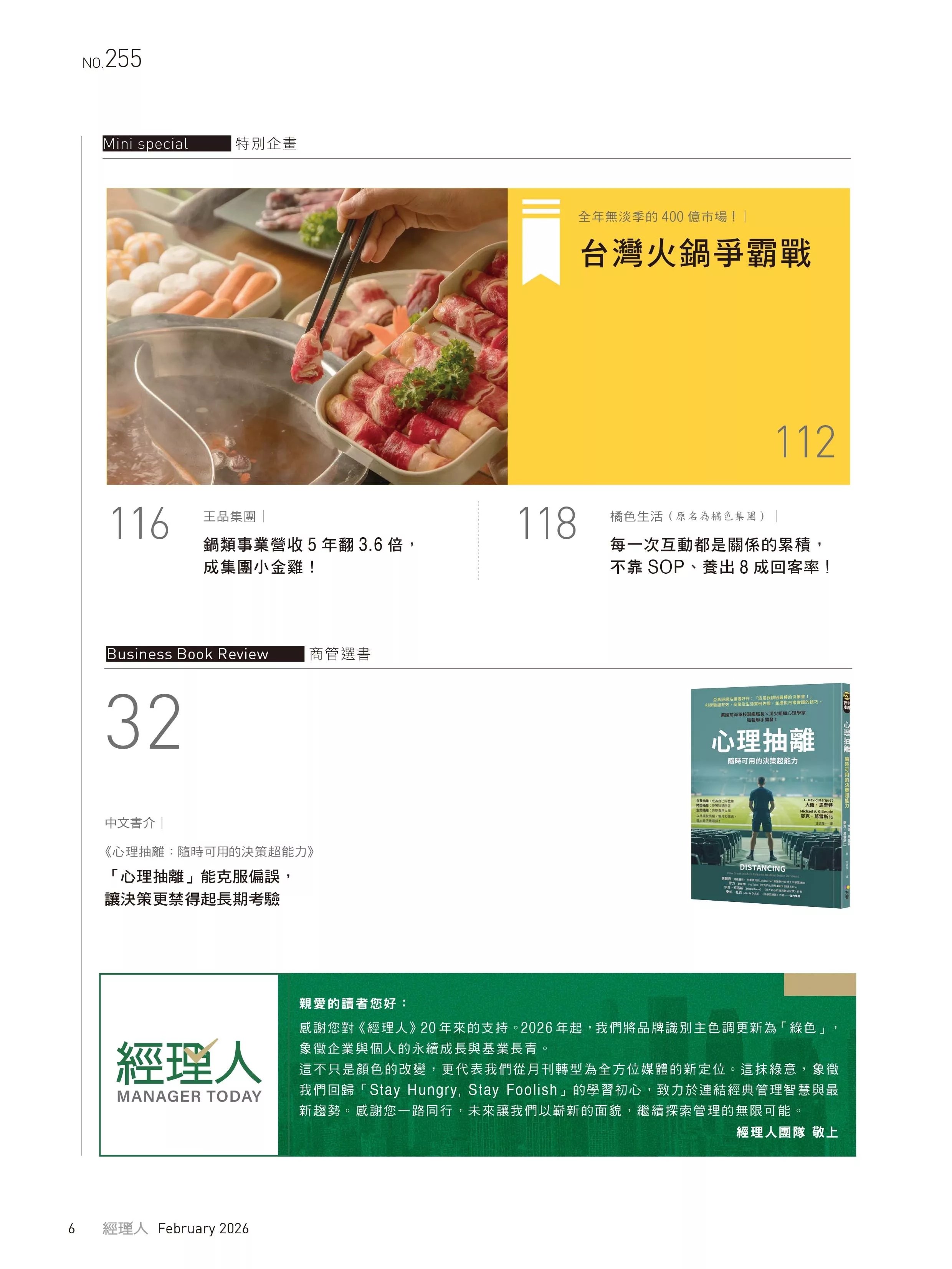 感謝您對《經理人》20年來的支持。2026年起,我們將品牌識別主色調更新為「綠色」,象徵企業與個人的永續成長與基業長青。