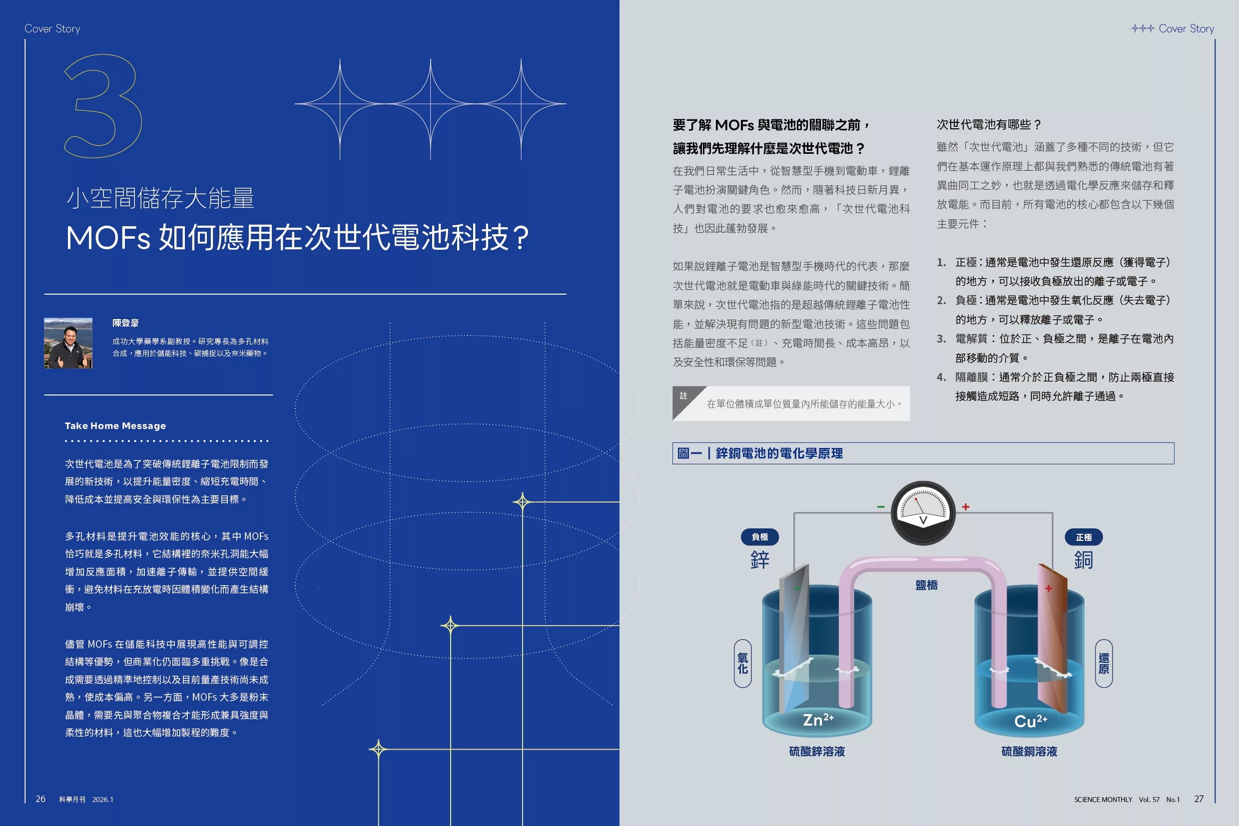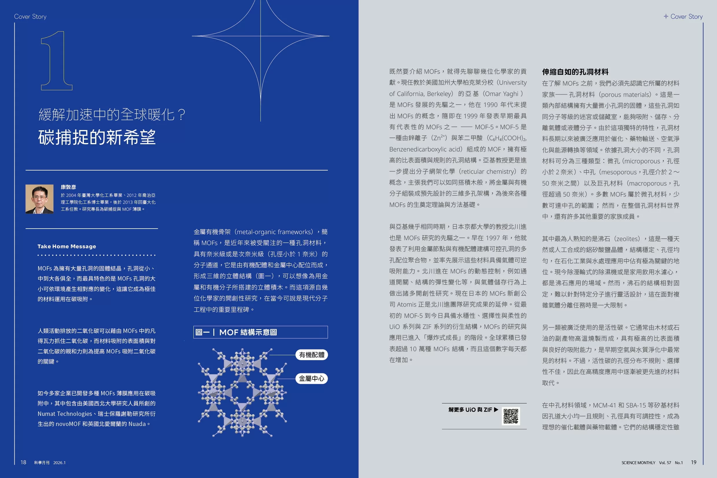 最後來聊聊這次的封面故事。若讀完去年12月號諾貝爾化學獎文章後仍意猶未盡,那麼這期內容絕對不容錯過,因為金屬有機骨架(metal organic frameworks, MOFs)的研究與應用早已超乎多數人的想像。因此,本期我們把 MOFs「展開說說」,從基礎研究延伸至能源、生物與產業上的應用,一起了解這項新興材料如何突破現有技術,成為驅動未來的關鍵。