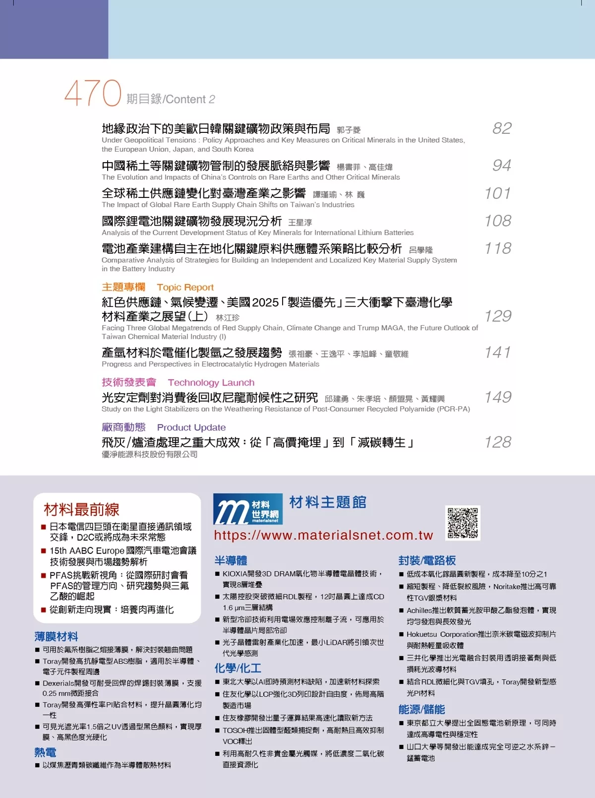 資源競合下的關鍵礦物策略技術專題 Special Report