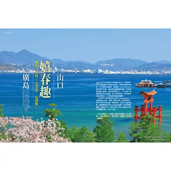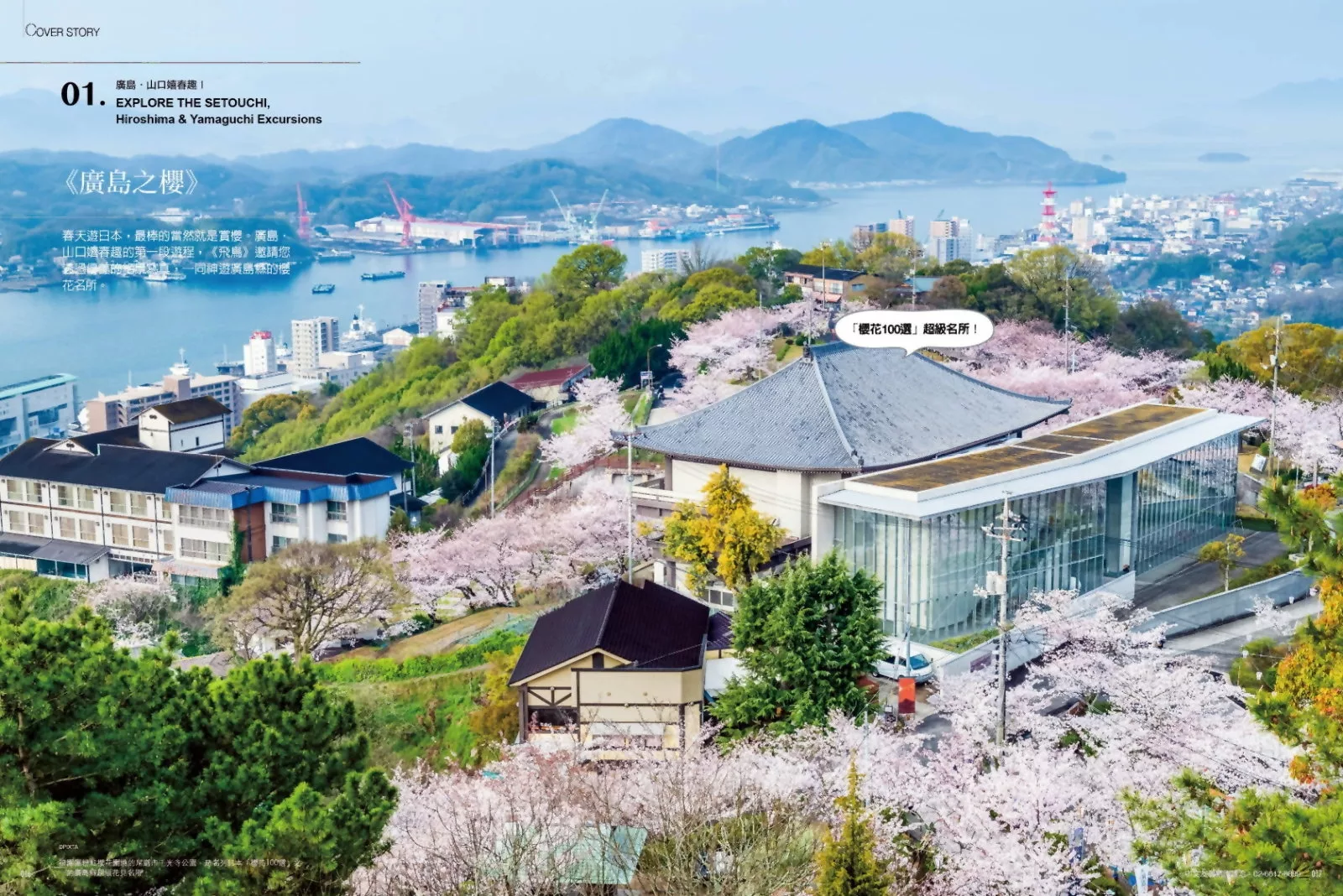 這期嬉春的提案舞台,我們設定在瀨戶內海沿岸的廣島、山口兩縣。除了一定比重保留給賞櫻外,要推薦您搭上遊船悠遊瀨戶內海,踏上秘境小島探幽。也要站上絕妙view point,從高處欣賞瀨戶內海的多島之美。在明媚春光下,逛逛港町的復古老街、看看在地的藝術據點,也都是我們的提案。落成不久就在國際奪下「世界最美美術館」封號的「下瀨美術館」,更是本期推薦的焦點。