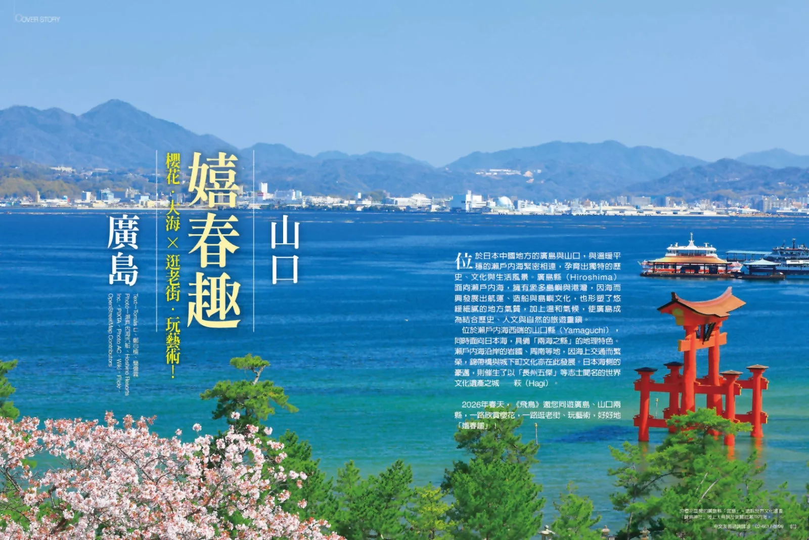 2026年春天,《飛鳥》邀您同遊廣島、山口兩縣,一路欣賞櫻花,一路逛老街、玩藝術,好好地「嬉春趣」!