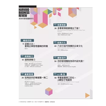 《哈佛商業評論》全球中文版與英文版同步,每月探討最先進、最權威的管理議題,提供專業經理人解決難題的良方,內容特色有 :