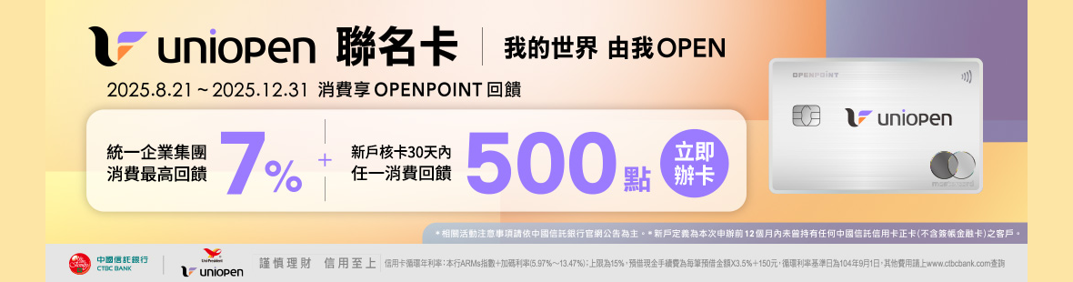 信用卡暨預借現金之各級別循環信用年利率依各行官網公告為準。