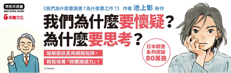 池上彰這本書書中提醒我們應該關注資訊來源的多樣性及可信度,避免被假消息誤導,學習設立心理界線,避免網路沉迷,同時提升數位素養。這樣不僅能擁有獨立思考及解決問題的能力,還能與網路更和諧的共處,利用數位工具及資訊幫助我們開創更多可能性。...more
