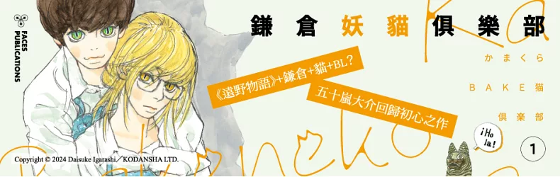《魔女》《海獸之子》《designs》《故事說不停》五十嵐大介最新作品《遠野物語》+鎌倉+貓+BL?五十嵐大介回歸初心之作樂斗與摩耶在鎌倉經營一間名為「鎌倉貓俱樂部」的雜貨店,表面上賣著圍繞著貓的雜貨