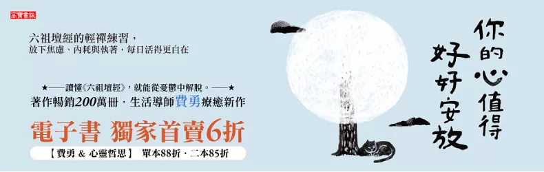 ────讀懂《六祖壇經》,就能從憂鬱中解脫。────關於「生活療癒」思維至高經典 ★著作暢銷200萬冊‧知名生活導師費勇療癒新作! 《六祖壇經》一部能夠流傳千年仍被誦讀的經典,它並非是一本宗教書,而是一本關於