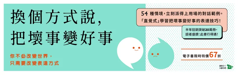 54種情境,立刻派得上用場的對話技巧。 「直覺式」學習把壞事變好事的表達方式! 【半年狂銷突破20萬冊】 讀者盛讚:此書行得通! ✽ 學習將不利的情況,轉化為展示自我、建...more