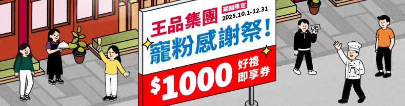 (電子票) 王品集團 $888抵$1000《寵粉感謝祭》全集團通用好禮即享券(限內用)(一次抵用型)【受託代銷】