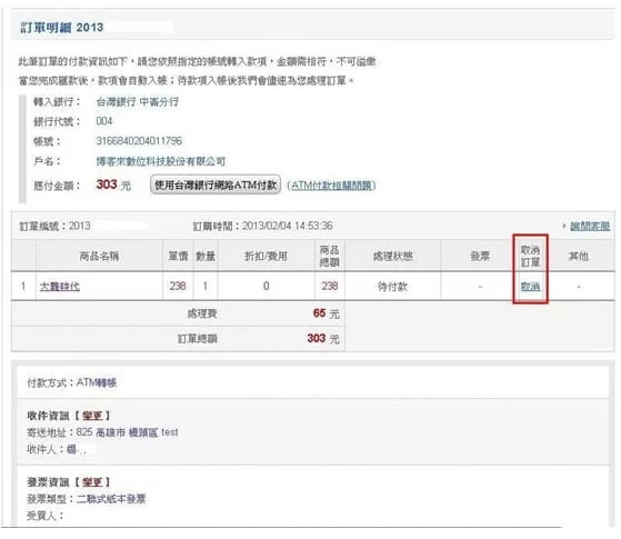 轉廠商處理:若您訂購的是「轉廠商出貨」的商品,將顯示此訊息。
