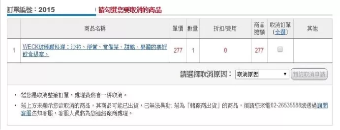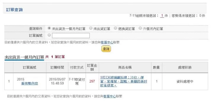已寄出:商品已由配送廠商配送中,會員可留意是否收到「出貨通知」。