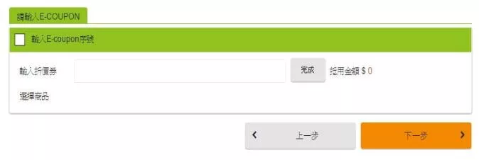 STEP7 若已勾選使用E-Coupon/單品折價劵,則需填入或選擇抵用品項
