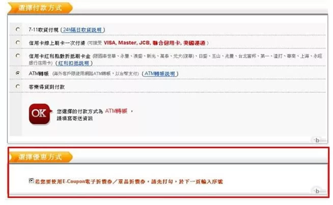 STEP5選擇付款方式及勾選欲使用的優惠折抵方案