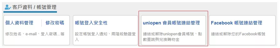 點擊「連結uniopen會員帳號」Click "connecting to uniopen account"