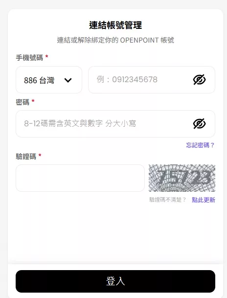 輸入驗證碼成功後,即完成uniopen會員帳號連結 After entering the CAPTCHA successfully, the connection to the uniopen account has been made complete