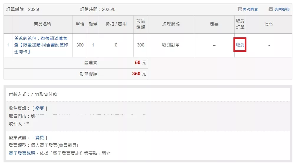 ※未出貨的訂單才可直接進行訂單取消。